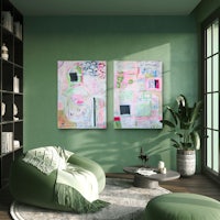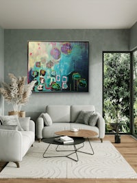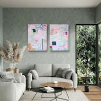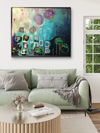Na první pohled zaujme energie díla a jeho jedinečná barevná harmonie. Dominantní syté růžové tóny evokují něhu, citlivost, radost, ženskost, ale i zranitelnost. Růžová zde není pouhým romantickým gestem; je to „vnitřní růžová mlha“, kterou si časem omotáváme kolem vzpomínek, abychom je zjemnili, potlačili jejich hrany nebo je transformovali do symbolů něčeho, co už je pryč, ale stále s námi rezonuje. Modré a indigové tóny přinášejí klid, introspekci a hloubku, představují tišší vrstvy nevědomí, které nesou paměť, aniž by mluvily nahlas. Zelené akcenty a oblouky dodávají nádech růstu, přírody a obnovy, naznačují naději a mohou být vnímány jako okna či brány do podvědomí, umožňující nahlížet na minulost s odstupem. Hra světla a stínu dodává obrazu dynamiku a umožňuje divákovi objevovat nové detaily při každém pohledu.