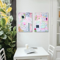 „Před vámi je obraz s názvem Memories. Deni Juříčková zde zachycuje vnitřní krajinu duše prostřednictvím barev, textur a pohybu. Dominantní růžová barva působí něžně, jako by chtěla obejmout. Je to barva vzpomínek, které hřejí, ale i těch, které jsme si časem přikrášlili, aby tolik nebolely. V dolní části obrazu vidíme kruhový tvar – centrum vzpomínek, možná duši samotnou. Linky a vrstvy se prolínají, stejně jako naše myšlenky, když se ponoříme do minulosti. Každý tah štětce jako by říkal: nezapomeň, ale už se nevracej. Tenhle obraz není jen ke koukání – je k prožití.“