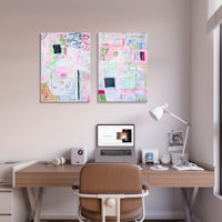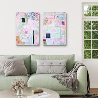 Vzpomínky jako vrstvy barev a emocí. Jemná růžová vypráví o lásce a bezpečí, zatímco temnější tóny připomínají, že i krásné momenty mohou nést stín. Centrální kruh symbolizuje jádro duše, horizontální linky pohyb času. Obraz je osobní i univerzální – zrcadlí vzpomínky diváka a zve k introspektivnímu dialogu a tiché reflexi času, který nás utváří.